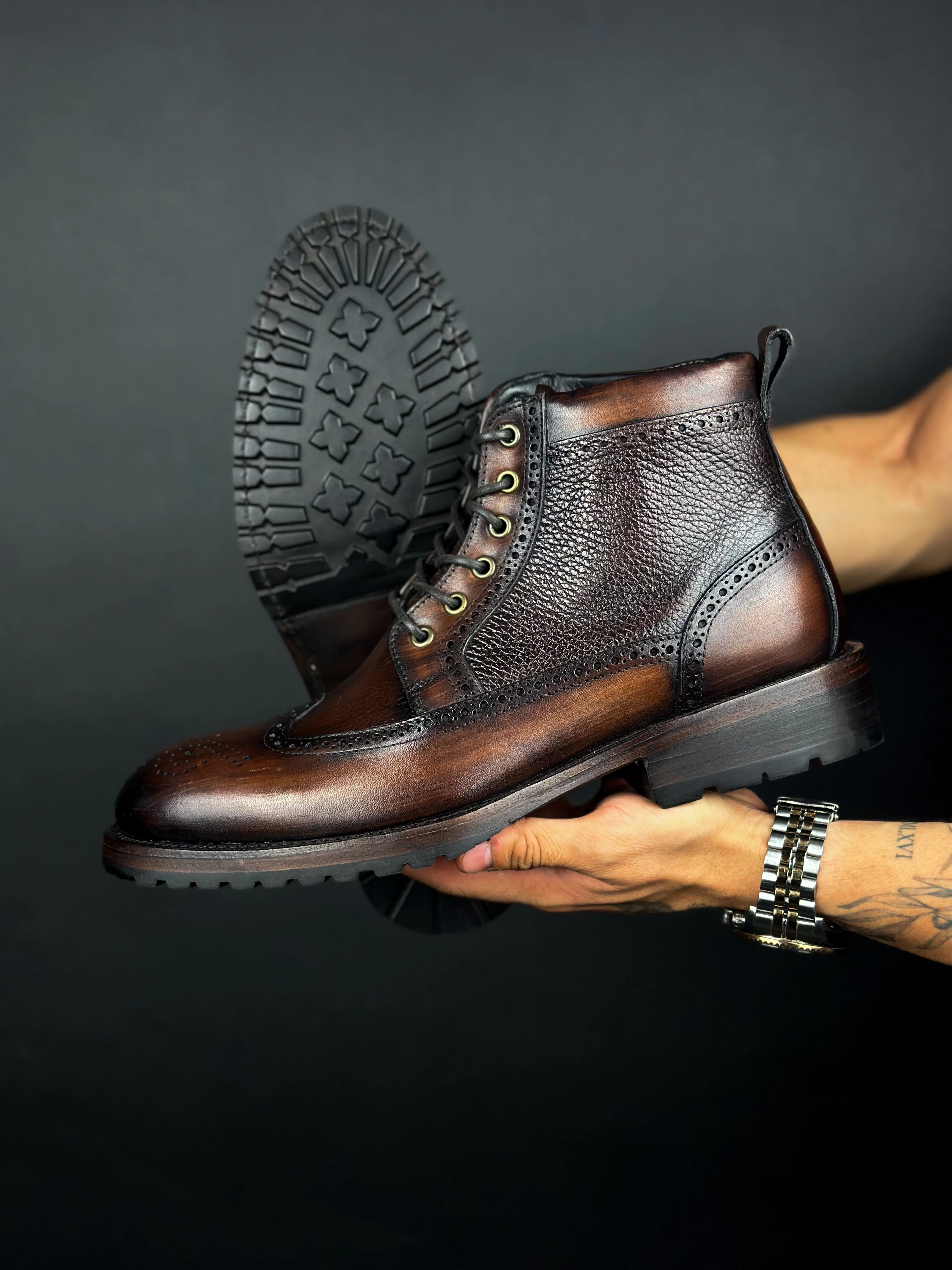 - Suela de cuero con firme de hule y media vida (TRACK)